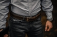 Ремінь з цільної шкіри з пряжкою з литого кольорового металу.