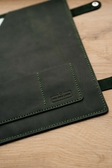 Папка з кріпленням для файлів. 2 кишені формату А4, праворуч кишені для документів та карток. Закривається на 2 застібки. Папка гнучка.